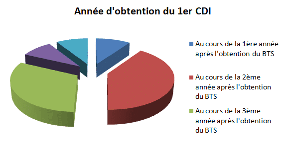 Nombre de mois travaillés depuis l’obtention du BTS : 32,4 mois, soit 90 % du temps.